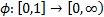 a continuous strictly decreasing function that maps the interval 0 to 1 onto