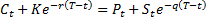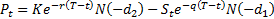 Garman-Kohlhagen formulae for values at time  of European-style put and call options with strike price maturing at time :