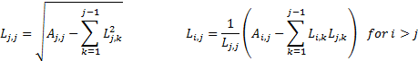 If  has real entries, is symmetric and is positive definite then it can be decomposed as  where  is a lower triangular matrix with strictly positive diagonal entries and  is its transpose. The entries of  are: