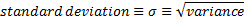 variance, standard deviation, cumulative distribution