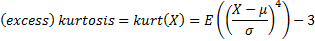 (excess) kurtosis, mean
