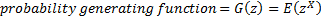the probability generating function is defined as: