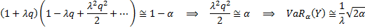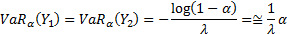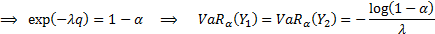 The exponential distribution (with independent variables) is not elliptical so VaR’s for it shouldn’t be coherent. More specifically it should be possible to identify a suitable  for which VaR is not sub-additive, i.e. for which , as sub-additivity is one of the axioms required for coherence. Although there is no certainty that this is the case it is likely that such a situation will arise either where  is close to zero or when  is close to 1. The case where  is close to 1 does not look promising as the behaviour of  will tend to be dominated by the exponential term. So instead let us consider the case where when  is close to 0. We then have for :