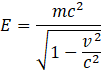 \frac{mc^2}{\sqrt{1-\frac{v^2}{c^2}}}” is rendered by a TeX viewer roughly