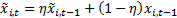 Here ,  is a suitable exponentially weighted moving average of , i.e.  for some suitable (perhaps predefined) value of  corresponds to the overall variance of the given linear combination and  corresponds to the extent to which it is well predicted by its previous values (assuming here a first order autoregressive dependency).