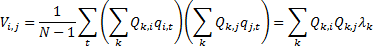 the covariance matrix, i.e. the matrix of correlation coefficients between the