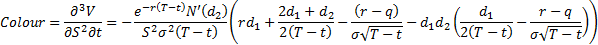 See Black-Scholes option pricing greeks for further details of notation and (other) option greeks.