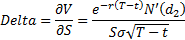See Black-Scholes option pricing greeks for further details of notation and (other) option greeks.