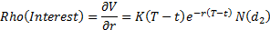 Returns the Rho[Interest], i.e. sensitivity of price to interest rate, of a European call option assuming that the (generalised) Black-Scholes (i.e. Garman-Kohlhagen) pricing formula applies, i.e.: