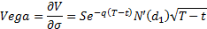 Returns the Vega, i.e. sensitivity of price to volatility, of a European call option assuming that the (generalised) Black-Scholes (i.e. Garman-Kohlhagen) pricing formula applies, i.e.: