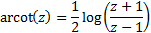 the principal value of the inverse hyperbolic cotangent of a complex number