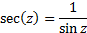 Returns , the cosecant of a complex number, . The cosecant can be calculated as follows. Given this simple relationship, it is used rather infrequently (e.g. in astronomy), so no equivalent inverse function is provided by the Nematrian website: