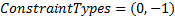 Constraints are coded -1 for , 0 for  and +1 for . For example, if ,  and the additional linear constraints are  and  then: