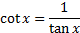 Returns the cotangent of an angle. This is the reciprocal of the tangent function: