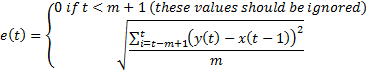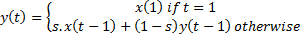 If the input array, , is of length  then the output consists of a two dimensional array  of size  where  corresponds to the exponentially smoothed values,  and  corresponds to the “standard error” of these values, , these being calculated as follows, where  and :