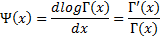 The digamma function,  is defined as the first derivative of the log gamma function, i.e.:
