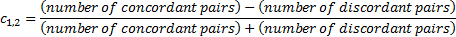 If are a set of joint observations from two random variables  and  then pairs  and   are said to be ‘concordant’ if both  and  (or if both  and ). They are said to be ‘discordant’ if  and  or if  and . Then the elements of the matrix are as follows, where each entry separately considers all possible pairs of  for ,  and