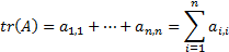 Returns the trace of an  (i.e. square) matrix , i.e. the sum of the elements on the main diagonal (from upper left to lower right) of , i.e.: