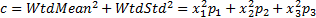 Returns optimised transition probabilities as an output array  given lattice levels  which an underlying at the current lattice node can move to, given that we want the sum of the probabilities to add to SumWts (will almost always be 1, as otherwise the  are not actually probabilities), the weighted mean of the underlying at the end of this period to be WtdMean and the one-period volatility of the underlying to be WtdStd.