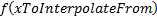 Returns the result of carrying out a polynomial interpolation given input arrays  and  and a value at which to interpolate, i.e. . The  and  need to be of the same size (say ). We find the (unique) polynomial  or order  that fits the points  and then return .
