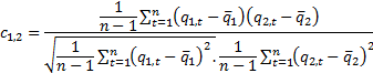 Returns the Spearman rank correlation coefficient  between two series,  and .