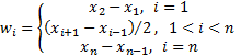 The weights, , used in this function, if the ordered -values are  and there are  such values, are: