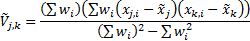 Weighted (sample) covariances, given weights  (for ), are calculated as: