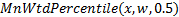 Returns , the weighted median of a series of observations series  given weights  (for ), i.e. the same as the value of .