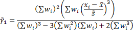 Returns , the weighted (sample) skew of a series  given weights  (for ), calculated as follows: