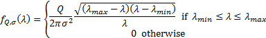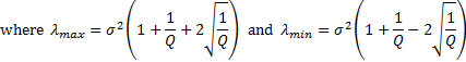 In the limit of very large matrices (i.e. ) this density is analytically tractable and is as follows, for covariance matrices derived from (independent) series that have a common standard deviation, . Correlation matrices derived from the above null hypothesis have this property, as they correspond to covariance matrices where each series has a standard deviation in isolation of .
