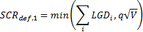 is in effect calculated as follows (although the formulae specified in the Delegated Act less clearly brings this out than the formulae in the earlier CEIOPS Level 2 guidance), subdividing exposures by rating class, where  and  run through each rating class and ,  and  are parameters which depend on rating classes.