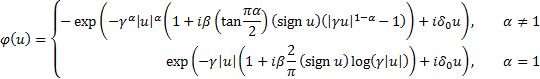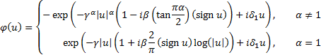 2.3In either description, the distributional form is normally defined via the distribution’s characteristic function, i.e. the (complex) function , where  is the expectation operator. Nolan (2005) uses the following definitions: